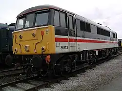 ![]() 86608 en Crewe. Freightliner es el mayor operador de las máquinas de la Clase 86 | ||