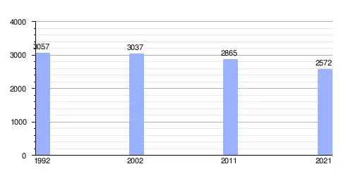 Hasta 2021 la población era de 2572 habitantes,[1] con una densidad de población de 53,68 habitantes por kilómetro cuadrado.[1]