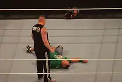 - ↑ Wells, Adam (27 de octubre de 2021). «Brock Lesnar Fined $1M by WWE for Attacking Adam Pearce on SmackDown». Bleache Deports (en inglés). Consultado el 29 de octubre de 2021.