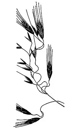 Es una hierba anual que alcanza un tamaño de hasta 60 centímetros de altura. Sus hojas son estrechas y están recubiertas de pelos suaves. La inflorescencia es una amplia gama cabezas, espiguillas planas, cada una en un tallo individual que puede estar curvado u ondulado.