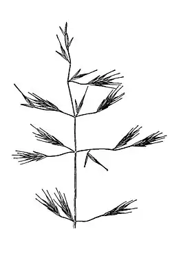Es una hierba perenne que puede alcanzar los 1,6 metros de altura. La inflorescencia es un conjunto abierto de espiguillas, las inferiores caídas. Las espiguillas son aplanadas y tienen cortas barbas en las puntas de los frutos.