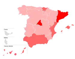 En la siguiente tabla se muestra el número de casos por comunidad autónoma a fecha de 17 de agosto:[17]