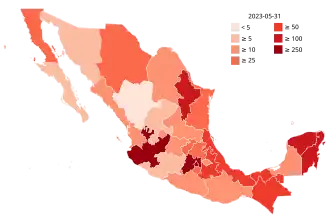 | Lugar del primer caso local | 1 en Ciudad de México | |
