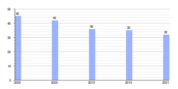 | Gráfica de evolución demográfica de Broza (parroquia) entre 2000 y 2021 |