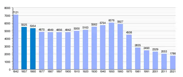 | Gráfica de evolución demográfica de Brozas[25] entre 1842 y 2021 |
