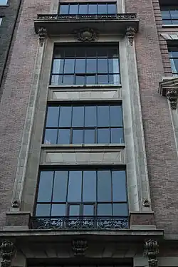El tercer piso es un piso de transición con bandas alternas de ladrillo rosa y terracota. En la calle 40, la tramo central tiene dos ventanas estrechas. Las otras cuatro tramos en esa elevación tienen amplias ventanas de estudio, que están separadas horizontalmente por bandas de terracota y tienen amplios dinteles de cabeza cuadrada. Las claves de las ventanas son volutas, y el tercer piso de la calle 40 está rematado por una estrecha cornisa de piedra.[16] Un arreglo más simple aparece en la Sexta Avenida; las tramos más exteriores son amplias aberturas de cabeza cuadrada, que flanquean tres ventanas más estrechas. Sobre estas aberturas hay dinteles abocinados, así como volutas que sirven como claves.[21]