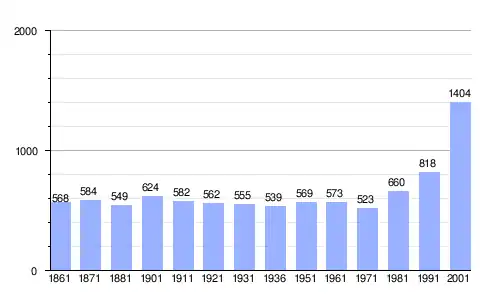 | Gráfica de evolución demográfica de Bubbiano entre 1861 y 2001 |