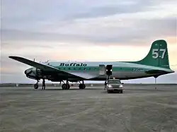 Buffalo Airways es una aerolínea de tradición familiar con base en Hay River, Territorios del Noroeste, Canadá establecida en 1970 por Joe McBryan, también conocido como "Buffalo Joe". Opera vuelos regulares de pasajeros y carga, vuelos chárter de pasajeros y carga, y servicios de lucha aérea contra incendios y de abastecimiento de combustible. Su base de operaciones principal está en el aeropuerto de Yellowknife (CYZF) con otras dos bases en el aeropuerto de Hay River/Merlyn Carter (CYHY) y el aeropuerto regional de Red Deer (CYQF). La base de Red Deer es la principal instalación de almacenamiento y mantenimiento.[1] La aerolínea es también objeto de la serie de realidad del canal de historia canadiense Ice Pilots NWT. Desde el 30 de noviembre de 2015 y hasta el 12 de enero de 2016, la autoridad de transporte canadiense prohibió las operaciones comerciales a la compañía debido a problemas de seguridad de sus aeronaves.[2]