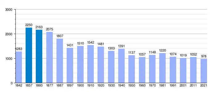 | Gráfica de evolución demográfica de Bujaraloz[5] entre 1842 y 2021 |