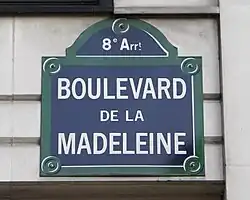 El Bulevar de la Madeleine es una calle que forma el límite entre los distritos I, VIII y IX de París, Francia.