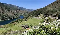- Bustelo (Bustello).[1] A 19 km de la capital municipal a 530 m de altitud en una suave ladera del pico Guileira (805 m). Contaba con 5 habitantes en 2022.[5]