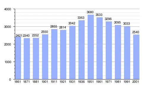 | Gráfica de evolución demográfica de Buonvicino entre 1861 y 2001 |