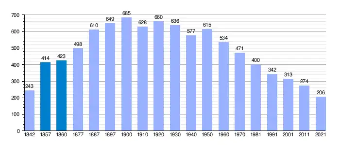 | Gráfica de evolución demográfica de Bureta[6] entre 1842 y 2021 |