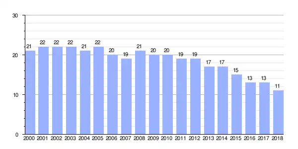 | Gráfica de evolución demográfica de Burgueiros entre 2000 y 2018 |