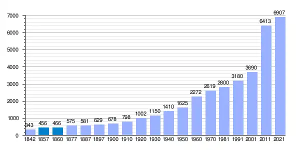 | Gráfica de evolución demográfica de Burguillos[3] entre 1842 y 2021 |