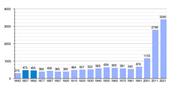 | Gráfica de evolución demográfica de Burguillos de Toledo[2] entre 1842 y 2021 |