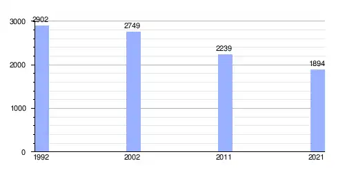 Hasta 2021 la población era de 1894 habitantes,[1] con una densidad de población de 15,30 habitantes por kilómetro cuadrado.[1]