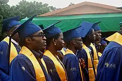 Estudiantes en un acto de Graduación en Burkina FasoEl tercer nivel es la educación posprimaria para jóvenes de 12 a 16 años, que conduce al Brevet d'études du premier cycle (BEPC).