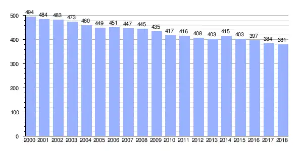 | Gráfica de evolución demográfica de Burres entre 2000 y 2018 |