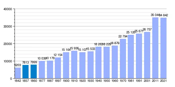 | Gráfica de evolución demográfica de Burriana[5] entre 1842 y 2021 |