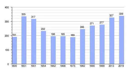 Los datos demográficos contemplados en este gráfico de la comuna de Bus-Saint-Rémy[4] se han cogido de 1800 a 1999 de la página francesa EHESS/Cassini, y los demás datos de la página del INSEE.[5]