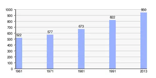 | Gráfica de evolución demográfica de Buselji entre 1961 y 2013 |