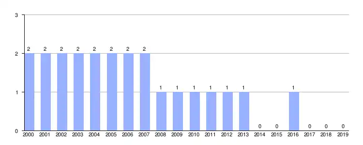 | Gráfica de evolución demográfica de Busnela entre 2000 y 2019 |