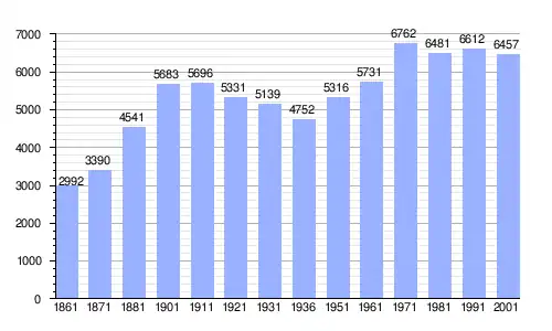| Gráfica de evolución demográfica de Bussoleno entre 1861 y 2001 |
