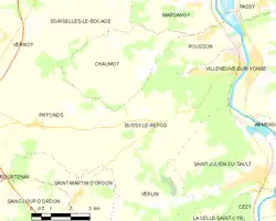 - ↑ Conseil Général de l'Yonne (2008). «Bussy-le-Repos» (en francés). Consultado el 13 de febrero de 2009. (enlace roto disponible en Internet Archive; véase el historial, la primera versión y la última).