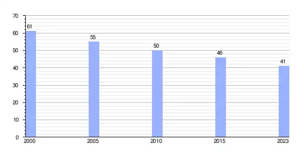 | Gráfica de evolución demográfica de Bustelo entre 2000 y 2023 |