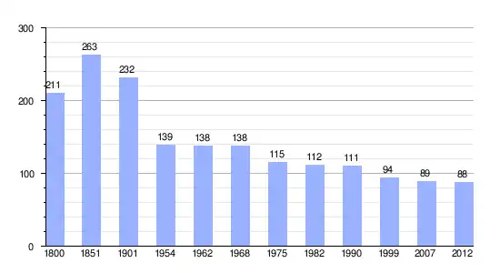 | Gráfica de evolución demográfica de Bustince-Iriberry entre 1800 y 2012 |