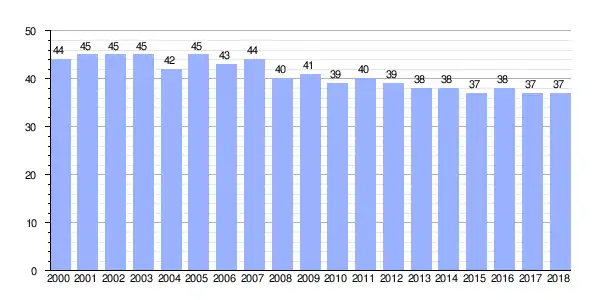 | Gráfica de evolución demográfica de Busto de Frades entre 2000 y 2018 |