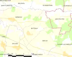 - Situación de Butteaux en un mapa de Francia y de comunas limítrofes Archivado el 7 de enero de 2009 en Wayback Machine. (en francés)
