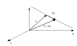 {\displaystyle {\begin{array}{rl}a)&\mathbf {v} =h\mathbf {y} ,\quad h\in \mathbb {R} ,\\&\lim _{{\big \|}\mathbf {v} {\big \|}\to \mathbf {0} }f{\big (}\mathbf {x} +\mathbf {v} {\big )}=\lim _{{\big \|}\mathbf {v} {\big \|}\to \mathbf {0} }f{\big (}\mathbf {x} +h\mathbf {y} {\big )}=f{\big (}\mathbf {x} {\big )}+f_{L}{\big (}h\mathbf {y} {\big )}=\\&f{\big (}\mathbf {x} {\big )}+hf_{L}{\big (}\mathbf {y} {\big )}\Rightarrow \\&\lim _{h\to 0}{\cfrac {f{\big (}\mathbf {x} +h\mathbf {y} {\big )}-f{\big (}\mathbf {x} {\big )}}{h}}=f'{\big (}\mathbf {x} ;\mathbf {y} {\big )}=f_{L}{\big (}\mathbf {y} {\big )}\end{array}}}