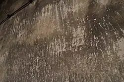 Huellas de uñas en la pared de una cámara de gas, Auschwitz I.