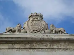 En alzado presenta dos plantas, con un cuerpo central avanzado. Pilastras toscanas, de orden gigante (peraltadas sobre un basamento) enmarcan los vanos. Las ventanas de la planta baja, de mayor luz, tienen un sencillo guardapolvo de traza horizontal, que desciende cóncavo en sus extremos. Sobre las pilastras corre un entablamento, en cuyo friso hay triglifos y bajo ellos tres gotas.