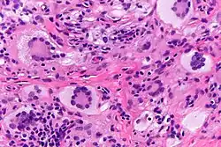 - ↑ Carmen Gómez-Mateo, Maria; Monteagudo, Carlos (2013). «Nonepithelial skin tumors with multinucleated giant cells». Seminars in Diagnostic Pathology 30 (1): 58-72. PMID 23327730. doi:10.1053/j.semdp.2012.01.004.