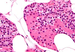 - ↑ Ritter, Haughey, Miller, Brown (2012). «Differential gene expression by oxyphil and chief cells of human parathyroid glands». J Clin Endocrinol Metab 97 (8): E1499-505. PMC 3591682. PMID 22585091. doi:10.1210/jc.2011-3366.