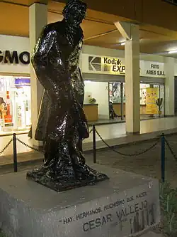 César Abraham Vallejo Mendoza (Santiago de Chuco, 16 de marzo de 1892-París, 15 de abril de 1938) fue un poeta y escritor peruano. Es considerado uno de los mayores innovadores de la poesía universal del siglo XX y el máximo exponente de las letras en Perú.[1] Es, en opinión del crítico Thomas Merton, «el más grande poeta católico desde Dante, y por católico entiendo universal»[2] y, según Martin Seymour-Smith, «el más grande poeta del siglo XX en todos los idiomas».[3]