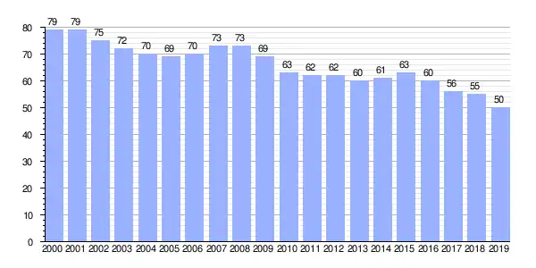 | Gráfica de evolución demográfica de Cícere (parroquia) entre 2000 y 2019 |