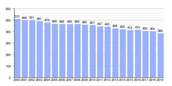 | Gráfica de evolución demográfica de Cícere (lugar) entre 2000 y 2019 |