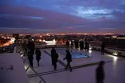La azotea muestra una perspectiva única de Madrid. Situada a 56 metros de altura, ofrece a sus visitantes una de las más espectaculares vistas de la ciudad. El edificio está coronado por la escultura Minerva, de Juan Luis Vassallo, una pieza que representa a la diosa romana de la sabiduría y el arte, símbolo del Círculo desde su fundación. Es posible acceder a la azotea desde el vestíbulo: un ascensor con puertas de cristal permite el acceso a este privilegiado espacio.