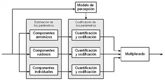 Los codificadores perceptuales aprovechan las limitaciones en la percepción del sistema auditivo humano (umbral de audición, enmascaramiento temporal y/o frecuencial) para codificar el flujo de datos.