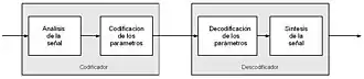 Los vocoders son codificadores paramétricos específicos para la codificación de la voz. Estos analizan la señal de voz correspondiente a un segmento temporal considerado estacionario para extraer los parámetros del modelo y la excitación. Esta información es la que se codifica. En el proceso de decodificación, el decodificador sintetiza los parámetros a través de un modelo de producción de voz.