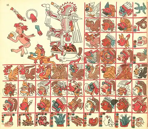El Códice Tonalámatl es un códice pictórico usado por los sacerdotes, magos y hechiceros mexicas como una guía o base de un ritual de adivinación.[1] De origen nahua se cree que proviene de Tlaxcala. Tonalámatl, significa «Papel de los días»; Tonalli significa «día» y Ámatl «papel hecho de la corteza interior de los árboles».[2] El Tonalámatl, es un códice literario contiene mensajes análogos y lógicos como son los matemáticos. Ya que el manuscrito muestra la escritura interna del Tonalpohualli, «Que es el calendario religioso; consta de 260 días (tiempo de gestación del ser humano), mantiene la cuenta llamada “Xiuhpohualli” de 365.25 días referente al ciclo de la Tierra y finalmente una cuenta de cuatro “Tlalpillis” o atados de trece años que forman una cuenta de 52 años llamada “Xiuhmohpilli” que mide los ciclos de Venus»,[3] calendario ritual o lunar.[2]