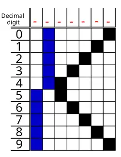 Valor Bits p-5-qqq 0 1-0-000 1 0-0-001 2 1-0-011 3 0-0-111 4 1-0-110 5 0-1-000 6 1-1-001 7 0-1-011 8 1-1-111 9 0-1-110