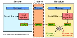 En criptografía, un código de autenticación de mensaje o Message Authentication Code en inglés, a menudo llamado por su sigla MAC, es una porción de información utilizada para autenticar un mensaje.