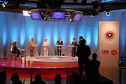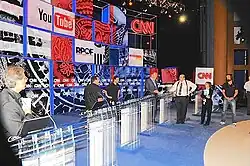 Previo a las elecciones presidenciales estadounidenses de 2008, CNN dedicó gran parte de su cobertura a la política, incluido el alojamiento de debates de candidatos durante las temporadas de elecciones primarias demócratas y republicanas.[43] El 3 y 5 de junio, CNN se asoció con Saint Anselm College para patrocinar los debates republicanos y demócratas de Nuevo Hampshire. Más tarde, el canal organizó los primeros debates presidenciales de CNN en conjunto con YouTube, un formato no tradicional en el que se invitaba a los espectadores a enviar preguntas por Internet a través del servicio de intercambio de videos de YouTube.[44] En 2008, CNN se asoció con Los Angeles Times para albergar dos debates primarios previos a su cobertura del supermartes. El debate de CNN y la cobertura nocturna de las elecciones generaron las calificaciones más altas del año, con una audiencia en enero de 2008 de 1.1 millones de espectadores, un 41 % más que el año anterior.[45]