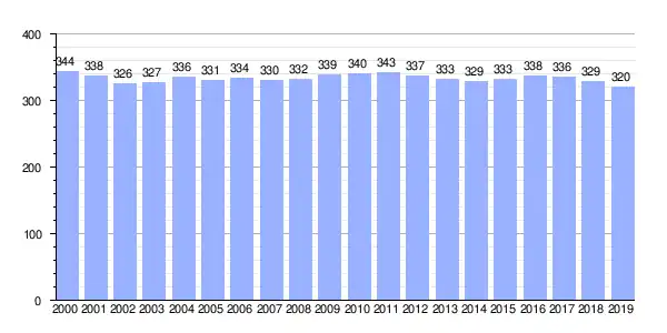 | Gráfica de evolución demográfica de Caamaño (lugar) entre 2000 y 2019 |