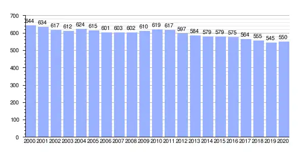 | Gráfica de evolución demográfica de Caamaño (parroquia) entre 2000 y 2020 |